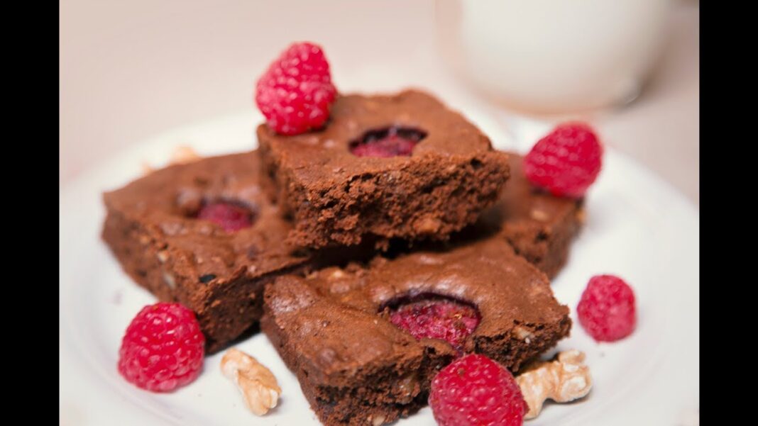 Brownie con frambuesas chocolate de otoño