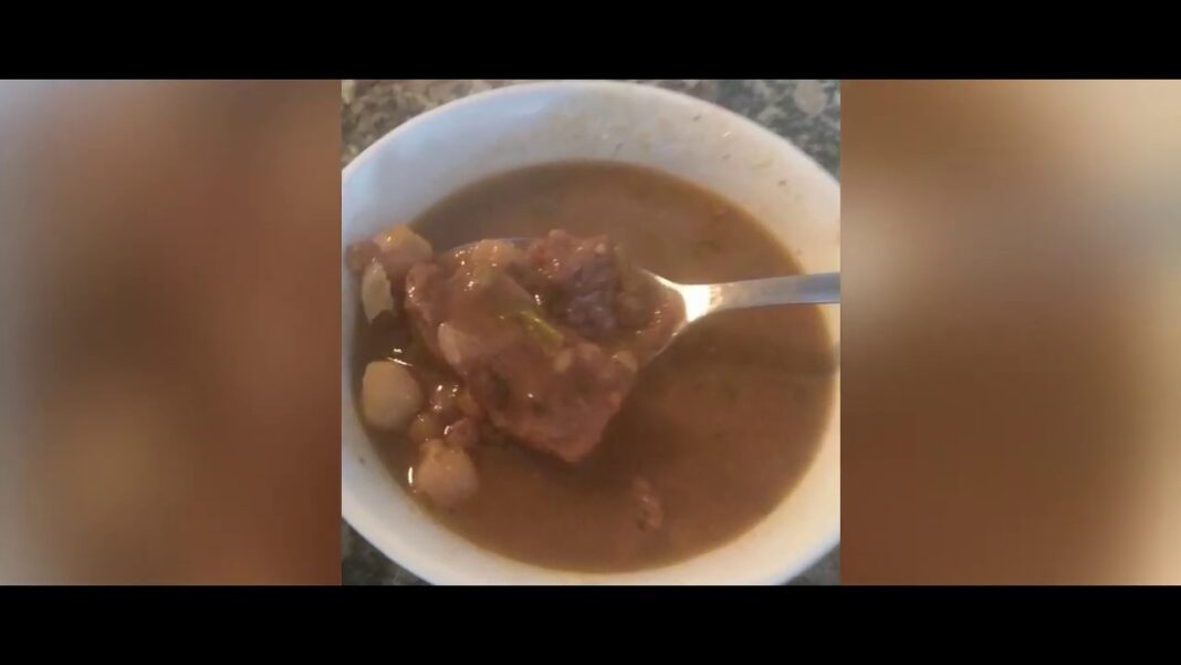 Añadir las albóndigas de carne y cocinar a fuego lento durante 15 minutos. Añadir agua si es necesario para evitar que se pegue. Cocinar hasta que la sopa esté espesa y los sabores se hayan mezclado bien.
