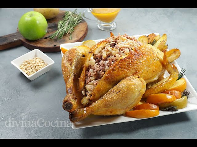 - Rellenar el pollo con la mezcla de carne y frutos secos.